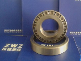 圓錐滾子軸承的內(nèi)、外圈具有錐形滾道,滾道之間裝有錐形滾子。若將錐形面延伸,最終會聚于軸承軸線上一點。圓錐滾子軸承主要用于承受以徑向載荷為主的徑向,軸向聯(lián)合載荷。軸承的軸向承載能力由接觸角決定,越大,軸向承載能力越大.圓錐滾子軸承為分離型軸承,帶滾子和保持架的內(nèi)圈構成內(nèi)組件,能與外圈分開安裝。 該類軸承主要用途:汽車前輪、后輪、變速器、差速器、小齒輪軸,機床主軸,建筑機械,大型農(nóng)業(yè)機械,鐵路車輛齒輪減速裝置,軋鋼機輥頸小減速裝置。